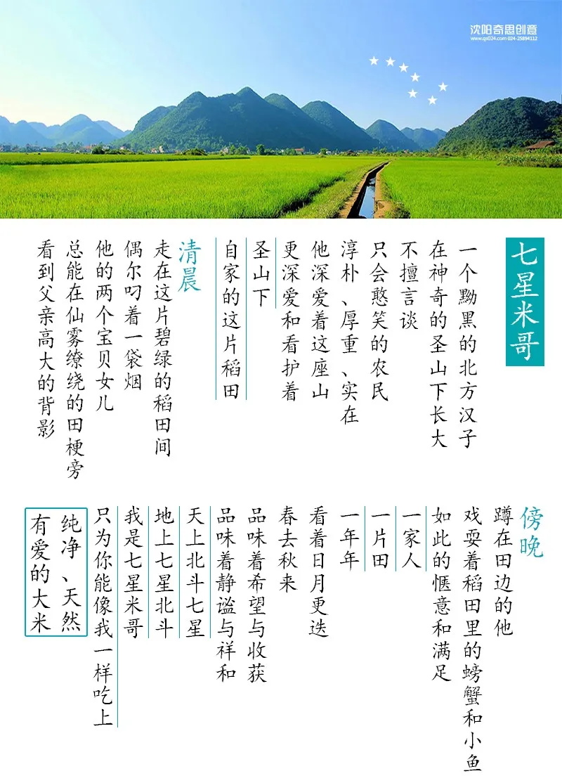 2009年,七星米哥經(jīng)人介紹,專程從內(nèi)蒙前往沈陽(yáng)奇思創(chuàng)意公司并達(dá)成品牌VI的初步合作......2013年第二次合作了包裝及廠區(qū)形象規(guī)劃......2018年七星米哥經(jīng)過(guò)十余年的發(fā)展,企業(yè)已具規(guī)模,品牌需要進(jìn)一步升級(jí)、系統(tǒng)規(guī)劃,經(jīng)深入探討后七星米哥毅然把品牌大計(jì)交付給沈陽(yáng)奇思創(chuàng)意,而更為神奇的是簽訂奇思12周年感恩升級(jí)年度戰(zhàn)略合同的這一天,竟然是