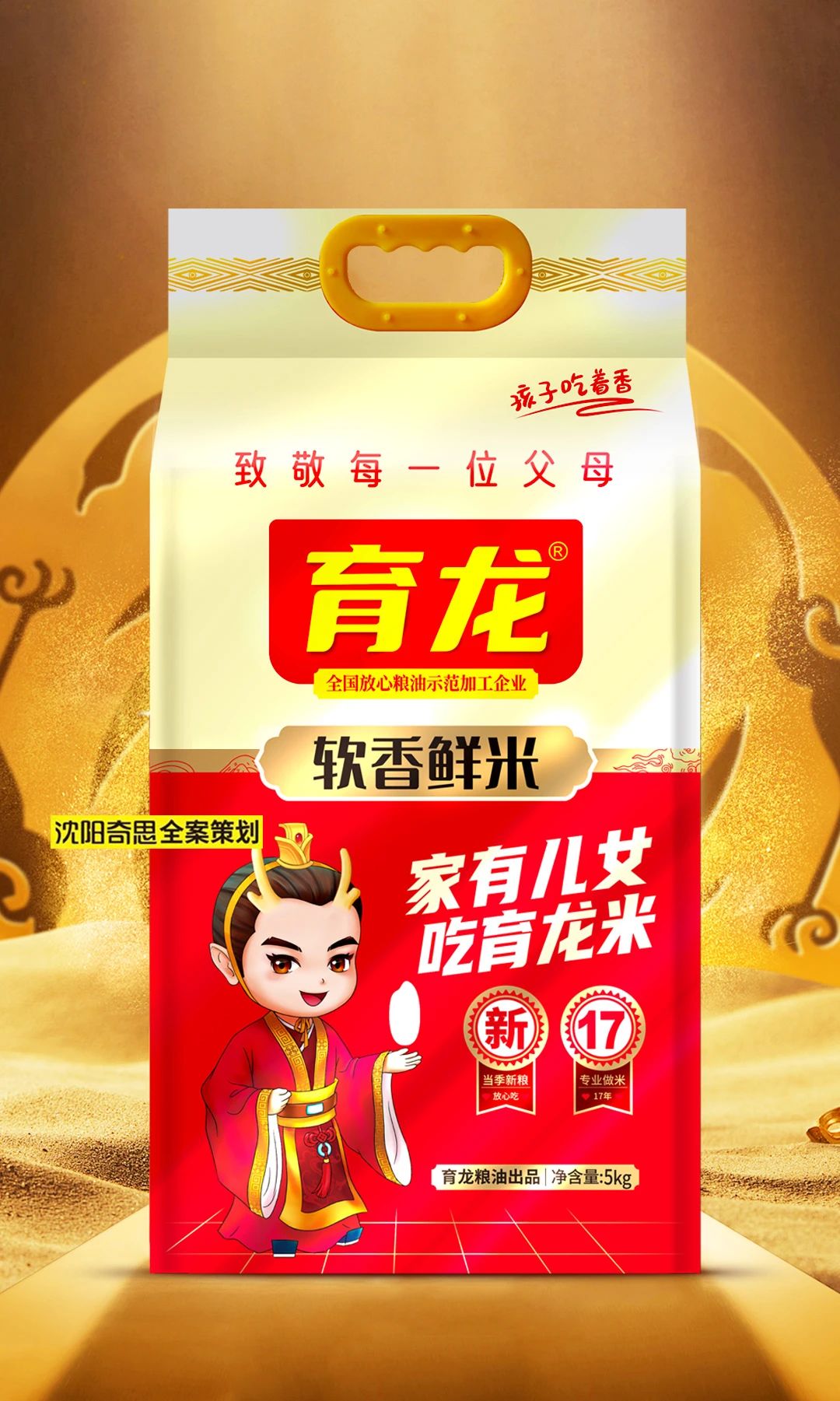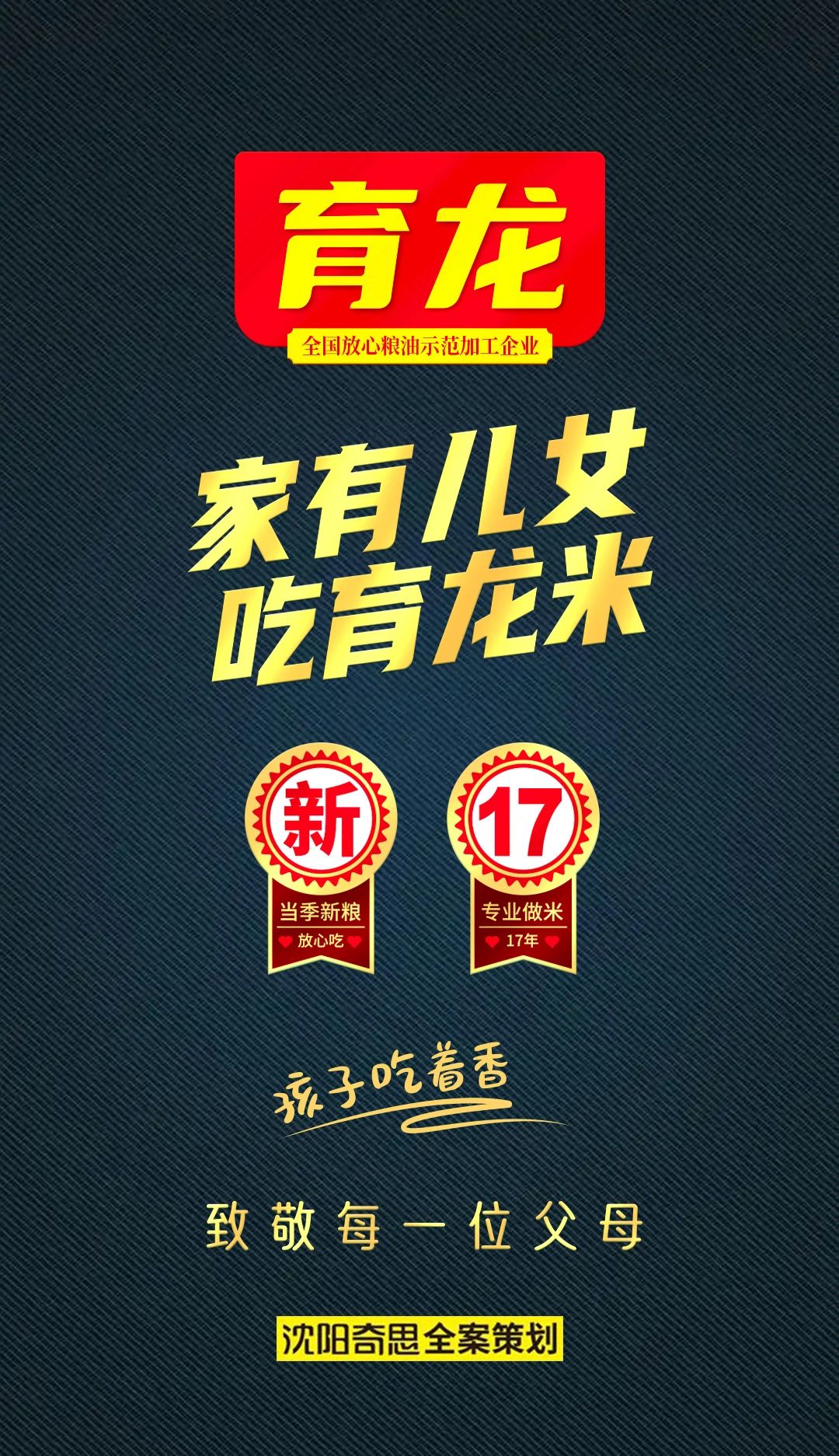 借力中國“家文化”中望子成龍的文化原力,并借力了人們熟悉的《家有兒女》電視劇名字,同時體現(xiàn)育龍的品牌屬性,并直接下達(dá)購買指令,策劃出“家有兒女,吃育龍米”的品牌廣告語。