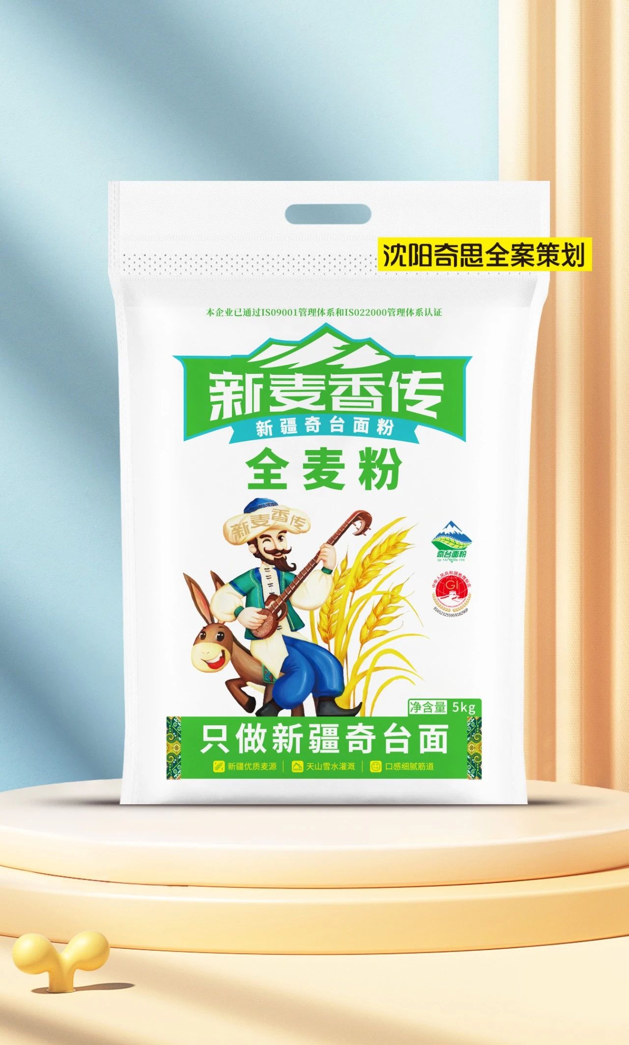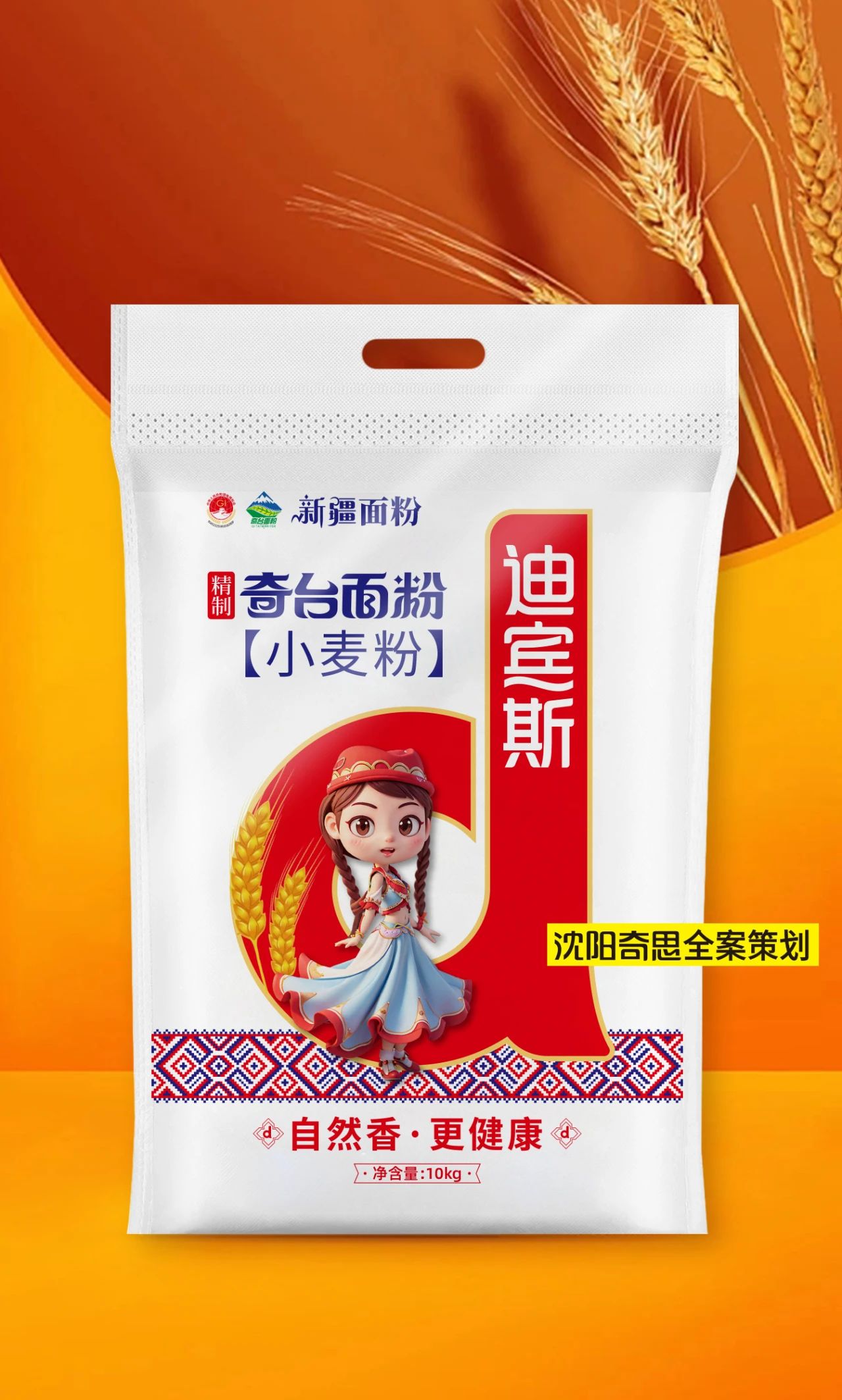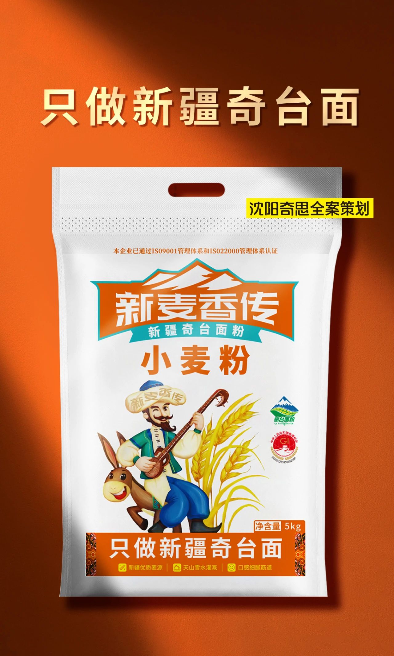 項(xiàng)目背景:新麥香傳,只做新疆奇臺面,與奇思合作近10年,本次為新麥香傳打造新疆面粉包裝,以“阿凡提”為代言人,塑造大家熟悉并喜愛的品牌形象。