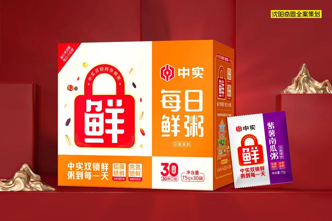 哈爾濱中實(shí)米業(yè)品牌價(jià)值10.25億元,與奇思第3次合作,打造中實(shí)雜糧粥料系列包裝。奇思策劃的“雙鎖鮮”超強(qiáng)定位,區(qū)隔市場(chǎng)競(jìng)品,為中實(shí)雜糧粥料奠定了堅(jiān)實(shí)的品牌基礎(chǔ)。
