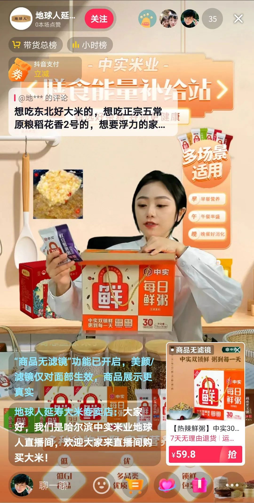 中實(shí)雜糧粥料系列產(chǎn)品抖音直播間